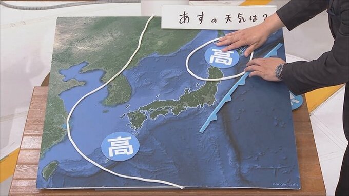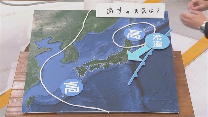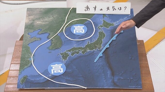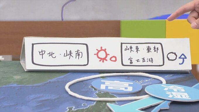 ですから北は涼しく、南は暑い空気となりますので、あすの山梨県はこの涼しいゾーンに入りますから、これで日中は気温が下がりそうなんです。