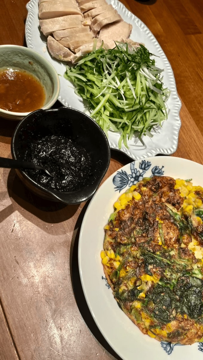そして「後は鶏の胸肉! タレは胡麻と梅の2種」と、鳥料理の写真をアップ。