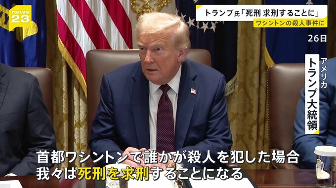 トランプ大統領は首都ワシントンで発生した殺人事件について、死刑を求刑するとの方針を表明しました。アメリカ トランプ大統領「首都ワシントンで誰かが殺人を犯した場合、我々は死刑を求刑することになる」ワシ…