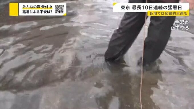 「こちら金沢市湊の交差点では冠水の被害が起きていて、私のくるぶしの上まで水が浸かっています」