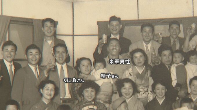 アメリカ軍の男性の隣に立っているのがくにゑさんと靖子さん。写真の中には10年前まで戦争をしていたとは思えない多くの笑顔があふれています。