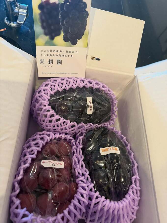 が届いて優しさに感動しました!」と贈り物についても言及。「果物大好き!ぶどう大好物!」と喜びを表現しています。