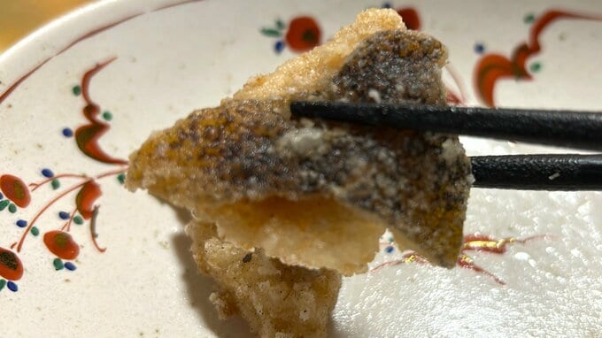 こちらは「皮が厚めの鶏胸肉の唐揚げ」といったところでしょうか。衣と油をまとったことで、湯引きよりも身と皮に一体感が生まれています。