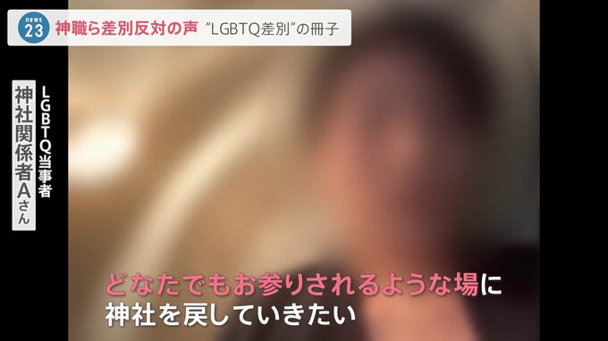 きっかけは2022年6月、神道政治連盟が国会議員懇談会の会合で配った冊子。大学教授らの講演録や論考が複数掲載されているもので、その一部には同性愛について「後天的な精神の障害または依存症」と記されています。意見書を取りまとめた神社関係者3人にその思いを聞きました。