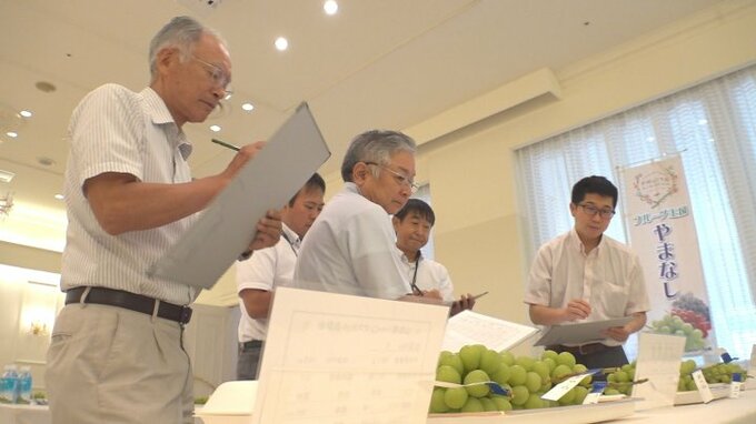 シャインマスカット品評会 あす東京と大阪で競売へ 今年は少雨で小粒傾向も高い糖度 山梨 To view this video please enable JavaScript, and consider upgrading to a web browser that supports HTML5 video テレビ山梨 2025年8月28日(木) 17:05 国内 収穫が早い産地で出荷のピークを迎えているシャインマスカットの品評会が甲府市で行われました。 これは山梨県産シャインマスカットの品質向上を目指して行われているもので、28日は県内4つのJAから13点が出品されました。