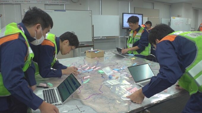 このうち統括班は建物損壊の状況や人的な被害を地図上で確認し、援助を調整する班は避難場所が液状化したたことで急遽、別の避難場所を手配する対応をとりました。