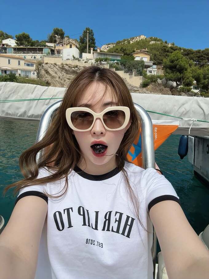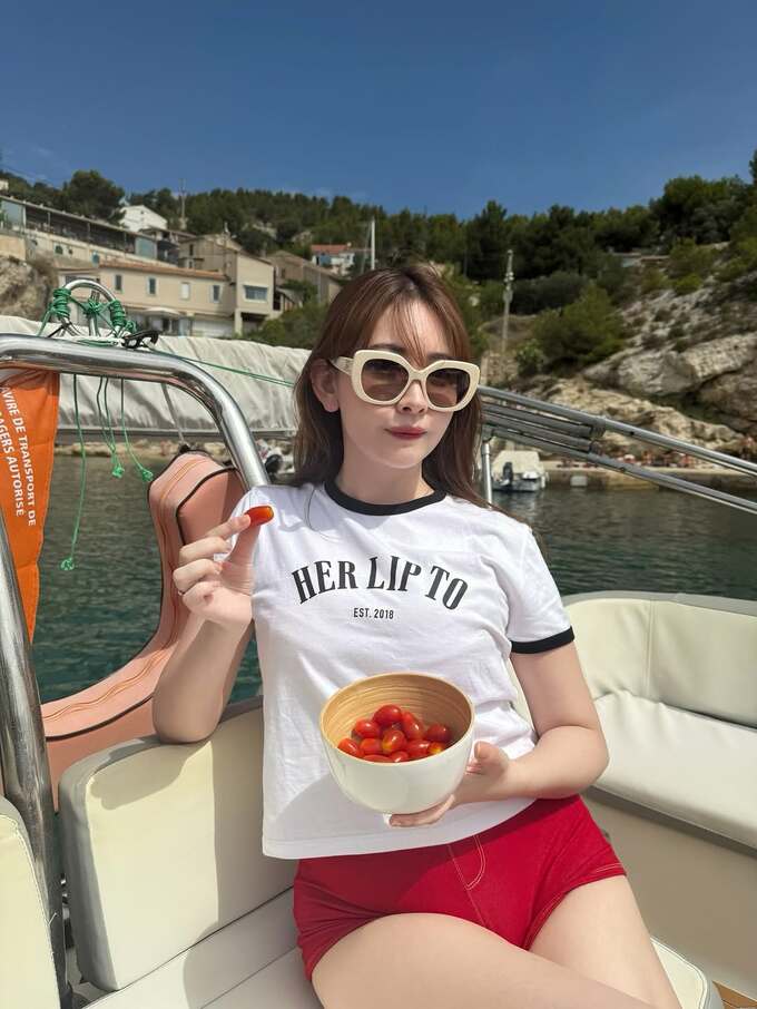 小嶋さんは「Boat day in Marseille」「パリからマルセイユへ。」「カランクに行きたくてボートで回りました」とテキスト。自身によるブランドのTシャツにサングラスと赤いショーツを合わせ、船のデッキで寛ぐ姿を投稿しています。