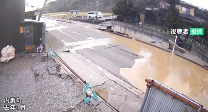 内灘町では液状化の影響で地盤が大きくずれ動き、横滑りする「側方流動」の被害が長期化しています。