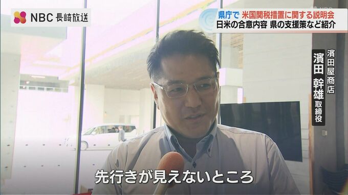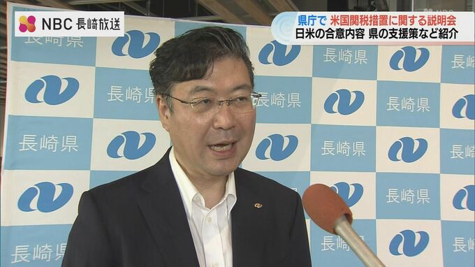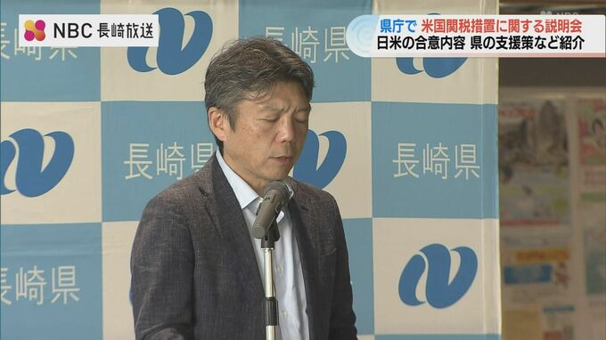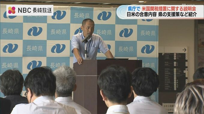 ことし7月、日米間で合意された関税措置について、長崎県内の事業者らにその内容や支援策を周知するための説明会が28日、県庁で開かれました。