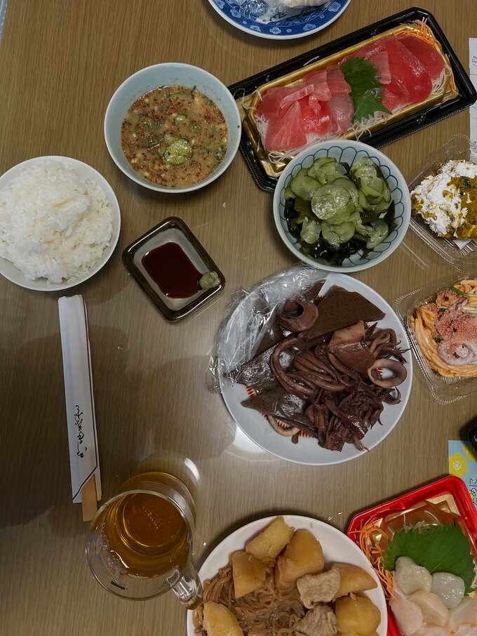 さらにおなじみの食卓写真では「1冊目の料理本にも載っているイカとこんにゃくの煮物」「ゲソが大好き!」とテキスト。他にもお刺身や酢の物、肉じゃがなどが食卓にびっしり並んでいます。