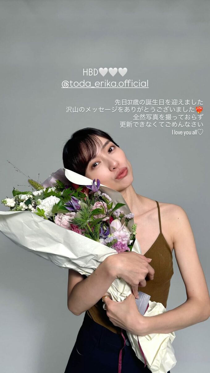 戸田さんは、「先日37歳の誕生日を迎えました沢山のメッセージをありがとうございました」「全然写真を撮っておらず 更新できなくてごめんなさい I love you all」と、感謝の気持ちを伝えました。