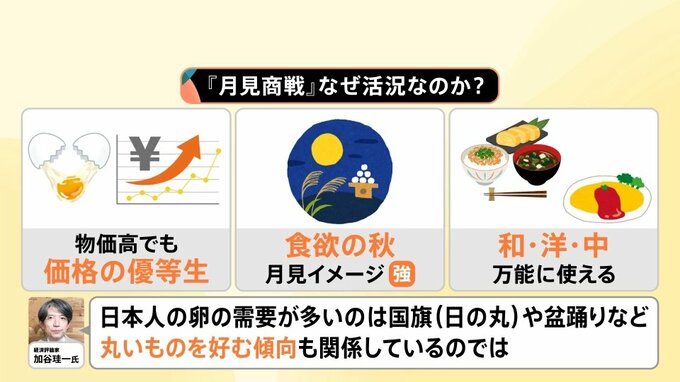 他にも、経済評論家の加谷珪一さんによりますと、「日本人の卵の需要が多いのは、国旗(日の丸)や盆踊りなど、丸いものを好む傾向も関係しているのでは」ということです。