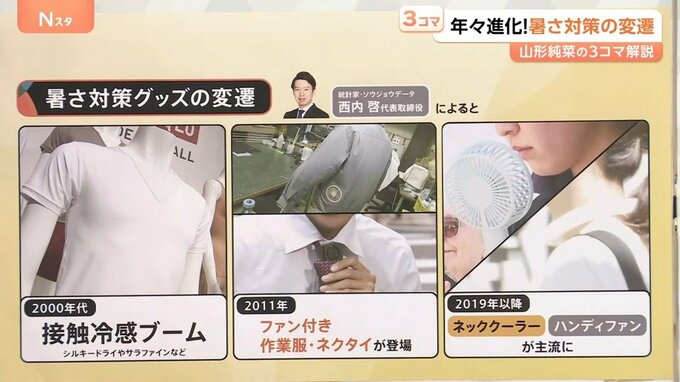 そして2019年以降、令和に入ってからは、ネッククーラーやハンディファンが主流になってきたということです。