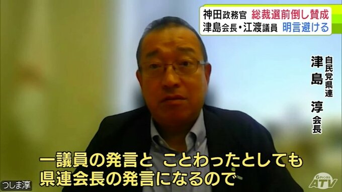 また、東北ブロック比例代表の江渡聡徳 衆議院議員は総裁選の前倒しについて、県連で参院選の総括が終わっていないことなどを理由にコメントは差し控えるとしています。