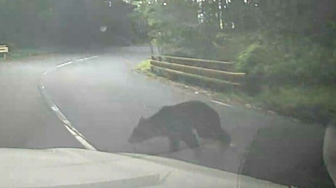 山口県周南市の県道でクマと乗用車が衝突しました。その瞬間をドライブレコーダーがとらえていました。進行方向の右側の山林から体長およそ1メートルのクマが突然現れ、道路を横ぎろうとしたところ乗用車に衝突し…