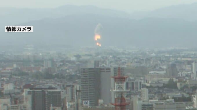 29日午前7時16分ごろ、チューリップテレビの情報カメラが、上空に向かって火柱が立ち上がり、激しく燃えている様子をとらえました。