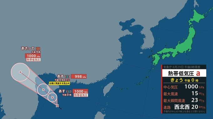 進行方向、速さ:西北西 20 km/h (10 kt)