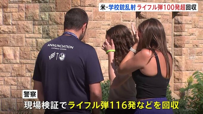 アメリカ中西部・ミネソタ州の学校で20人が死傷した銃乱射事件で、現場で100発以上のライフル弾を回収したと警察が発表しました。記者「一夜明け、現場となった教会の前には犠牲者を悼む多くの人が訪れています」…