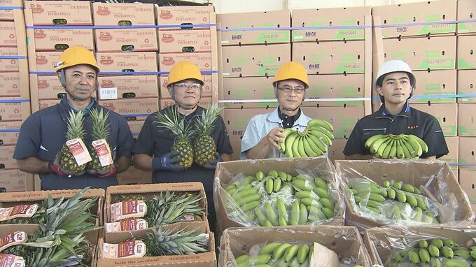 毎年旧盆に合わせてお供え用の果物をフィリピンなど海外から輸入している那覇青果では、バナナやパイナップルなどの青果550トンを出荷する予定です。