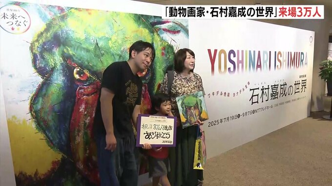 動物画家・石村嘉成の世界が入場者3万人を超え、29日、記念のセレモニーが行われました。
