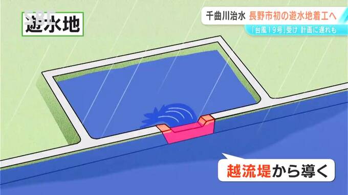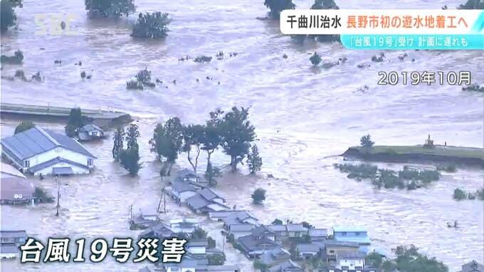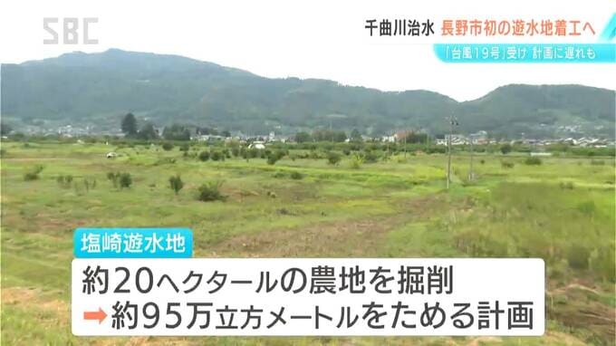 洪水のときに千曲川の水位を下げる遊水地の整備が長野市篠ノ井で始まります。再来年度の完成を目指していますが、当初の計画より遅れているといいます。