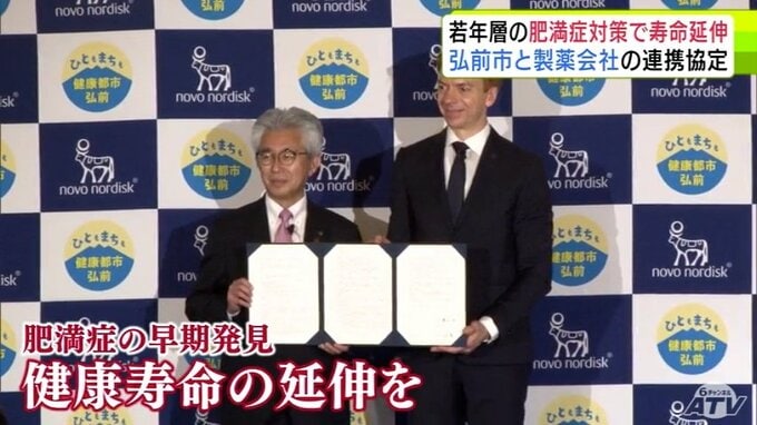 青森県弘前市と世界的大手製薬会社が、健康寿命の延伸を図るため、若年層の肥満症対策に関する連携協定を結びました。弘前市と連携協定を結んだのは、世界的大手製薬会社の日本法人「ノボ ノルディスク ファーマ…