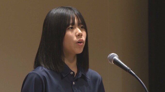最優秀賞には竹田市立竹田中学校の島村音羽さんが選ばれました。島村さんは自身の病気の経験を通して、思いやりの大切さを学んだと語りました。