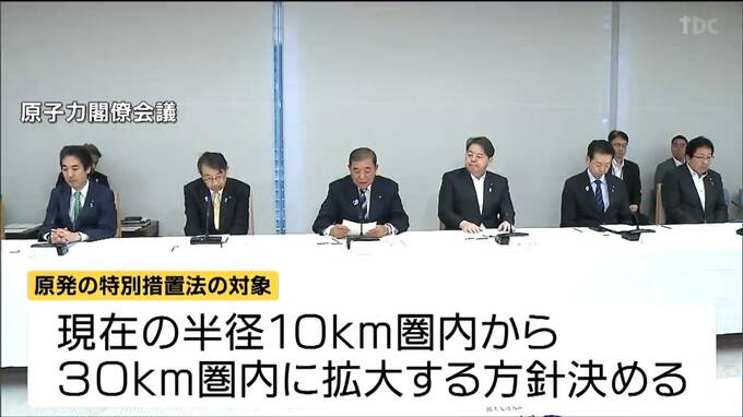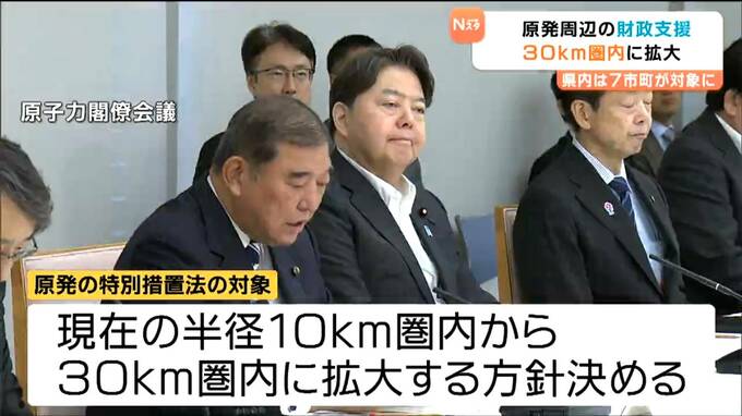 29日に開かれた原子力閣僚会議で政府は、原発のある地域への財政支援を定めた特別措置法の対象地域について、現在の原発の半径10㎞圏内から30㎞圏内に拡大する方針を決めました。