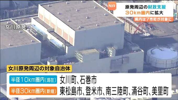 これで、宮城県内で対象となる女川原発周辺の自治体は、7つの市と町に拡大します。