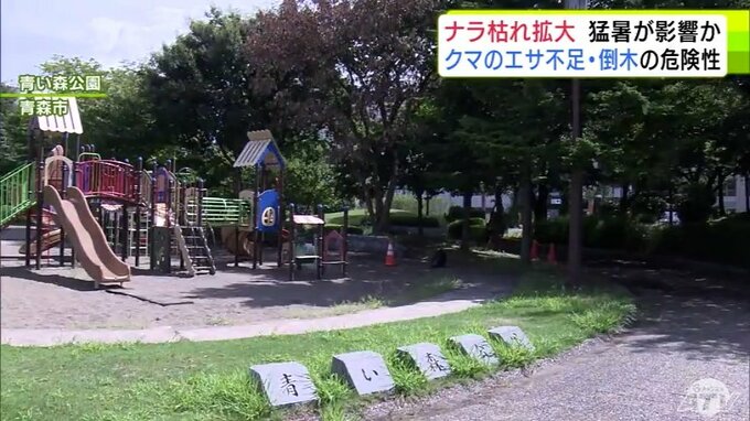 枯れ始めるのは例年7月下旬からで、ナラやカシ類などの広葉樹で被害は多く発生します。2025年は、青森市の県庁前にある「青い森公園」でも確認されています。