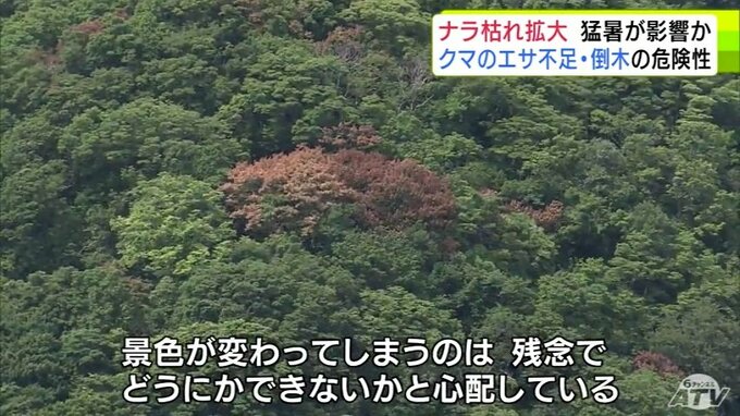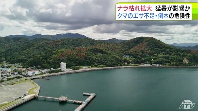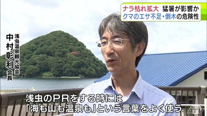 夏場に海水浴客で賑わいを見せる青森市の「サンセットビーチあさむし」でいま、周辺の山に異変が生じています。枯れて茶色く変色した木々。樹木に伝染する病気「ナラ枯れ」です。地域のシンボル・湯ノ島でも被害が広がっていて、観光関係者は不安を募らせています。