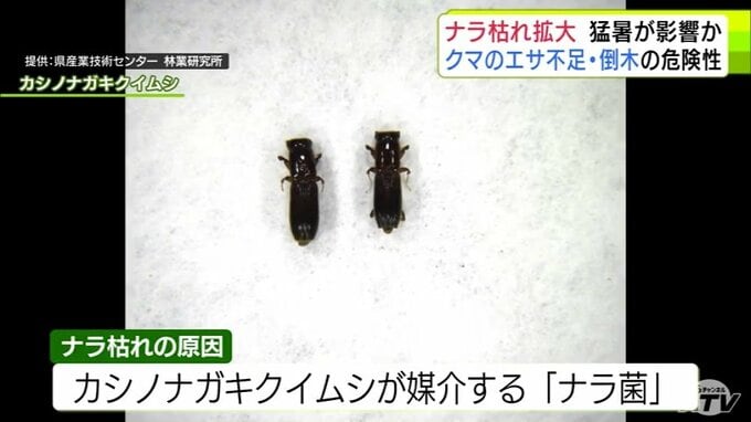 『カシノナガキクイムシ』が媒介の「ナラ菌」で感染すると…