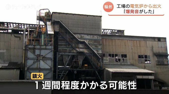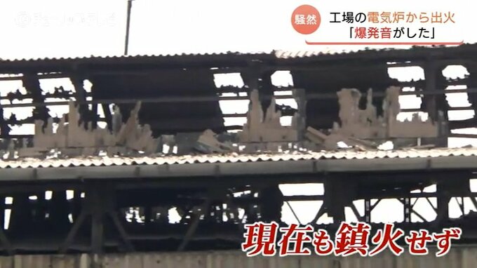 電気炉の温度は非常に高く、水をかけると爆発する恐れがあることから鎮火には1週間程度かかる見込みですが、延焼するおそれはないということで消防などは自然に鎮火するのを待つ方針です。