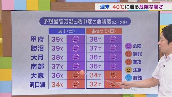米津龍一気象予報士:あすのお天気ポイントはこちらです。40℃に迫る危険な暑さとなります。8月ももう終わりなんですが。なぜそうなるのかという要因は代表して3つあります。まず一つ目の要因は高気圧に覆われるこ…