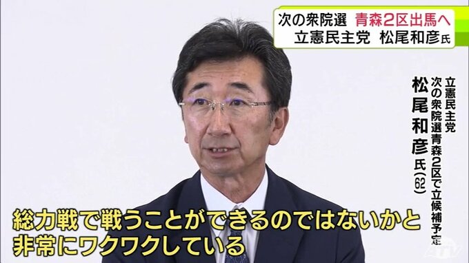次の衆議院議員選挙に向けた動きです。立憲民主党青森県連は、青森2区の公認候補予定者に、前の三戸町長の松尾和彦 氏を選任することを正式に決めました。
