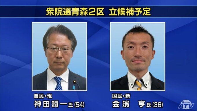 次の衆院選、青森2区には自民党の現職・神田潤一 氏(54)と、国民民主党の新人・金濱 亨 氏(36)が出馬を予定しています。