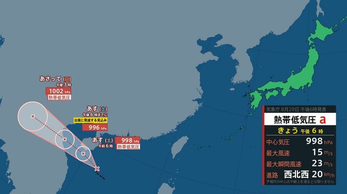 進行方向、速さ:西北西 20 km/h (12 kt)