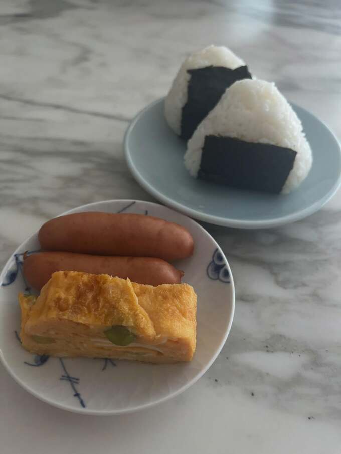 山口さんは「8歳児が夏休みの間 お弁当を食べていなかったからか」「おにぎりと卵焼きが食べたい!って 自分で作るって作りました」と投稿。山口さんも手伝ったとのことですが「卵焼きは枝豆入り」「母ちゃん思いもつかなかったアイディアで」と、驚きをもって見つめています。