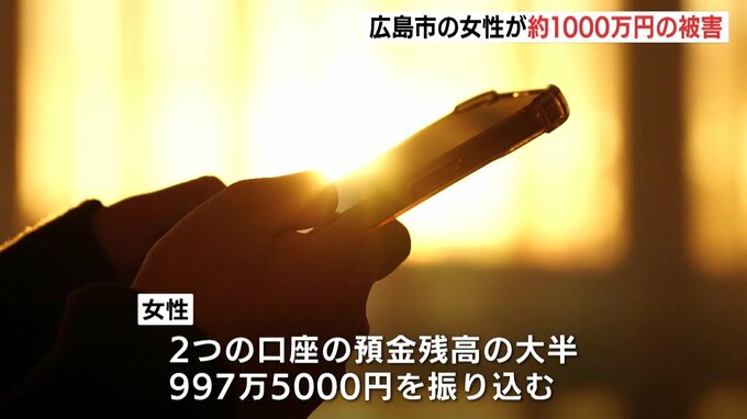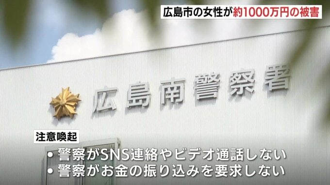 広島市の40代の女性が、日本郵便や警察をかたる詐欺に遭い、およそ1000万円をだまし取られました。