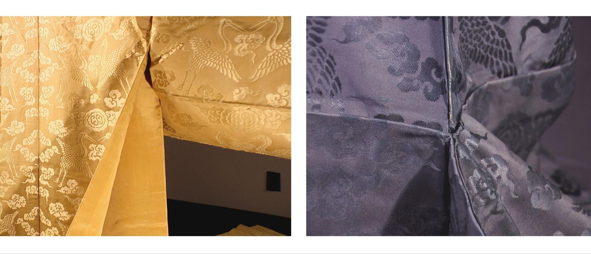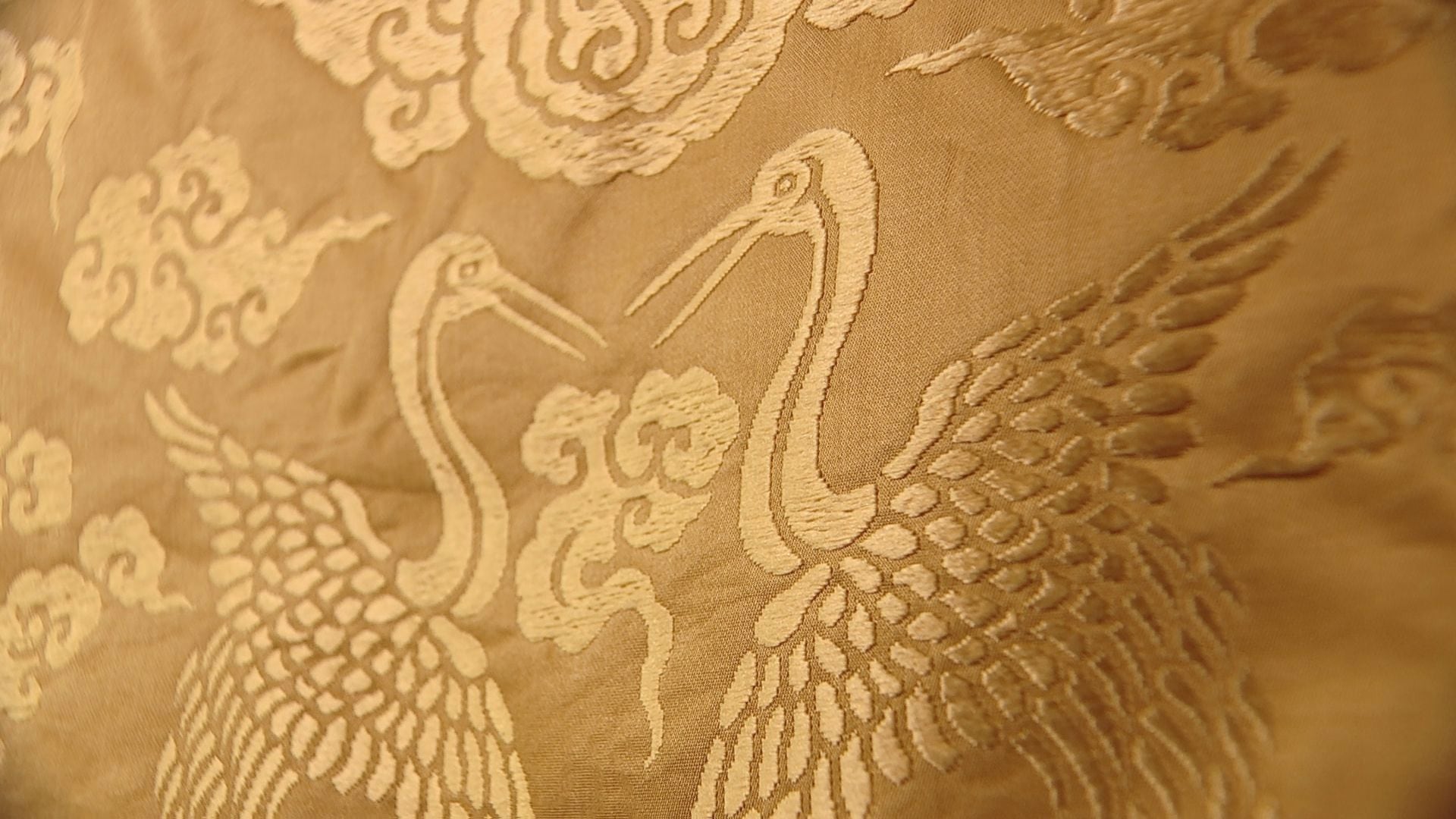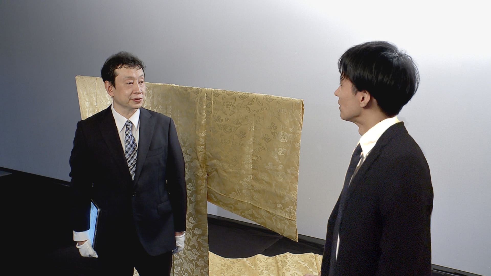 「よく見ると、どちらも『雲』と『鶴』の文様が入っているのが分かります。明治以降、成年式装束については、これと同じ文様を使っています。色についても変わっていません」