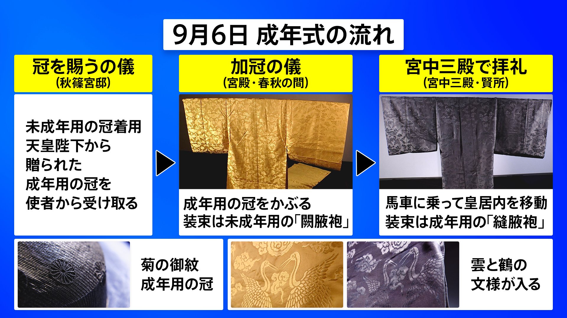 秋篠宮家の長男・悠仁さまが、2025年9月6日に成年式を迎えられる。皇居・宮殿や赤坂御所内のさまざまな場所を移動しながら、この日だけで9つもの儀式・行事を行う(あいさつ含む)。