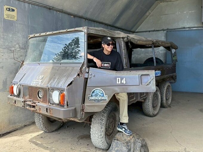 TAKAHIROさんは「ジュラシック・パークを始め数々の映画の撮影場所としても知られる大自然溢れるロケーション」と綴り、映画「ジュラシック・ワールド」に登場する車両や、看板の前でポーズを決める姿などの写真を投稿しています。