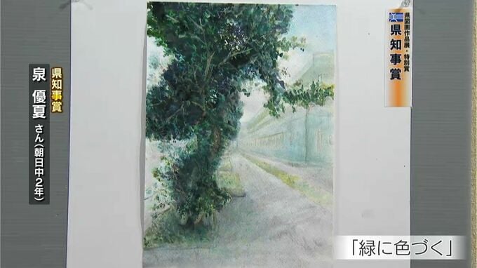 奄美市・朝日中学校2年の泉優夏さんの緑の美しさを表現した「緑に色づく」の3作品が受賞しました。