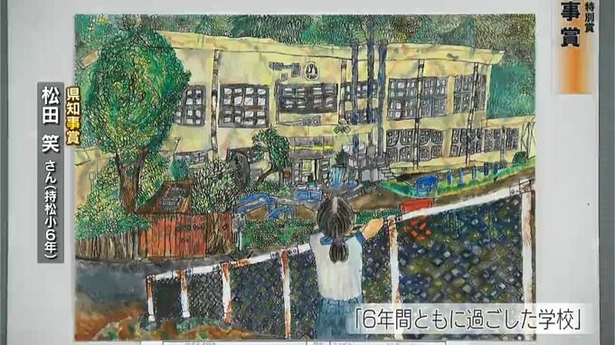 (県知事賞・持松小学校6年 松田笑さん)「県知事賞という最高賞を受賞できたことの大きな喜びを味わうことができました。この学校での大切なすばらしい思い出がまた1つ増えました」