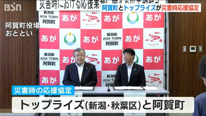 新潟県阿賀町と新潟市のトップライズがドローンを活用した災害時の応援協定を結びました。