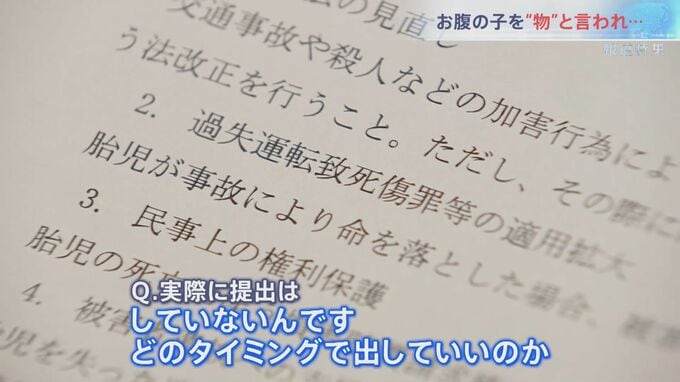 5年前には、国に対し胎児も交通事故の被害者と認めるなど、法改正を求める要望書を作成したが…