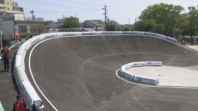 名古屋市中村区の名古屋競輪場の東隣りに整備されたBMXのレースコースは、広さが約1万平方メートル、全長約330メートルで国際大会の基準を満たし、来年のアジア競技大会でも使用される予定です。