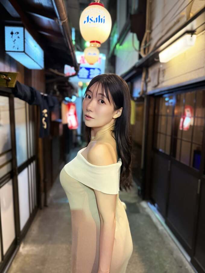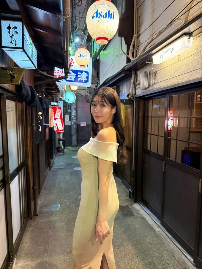 投稿された画像では、穂川果音さんが、路地と飲食店をバックに佇む様子が見て取れます。