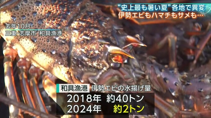網にかかるようになったのは、南国の魚。暑さの影響で、伊勢エビの水揚げは、この7年で約20分の1ほどにまで激減しています。