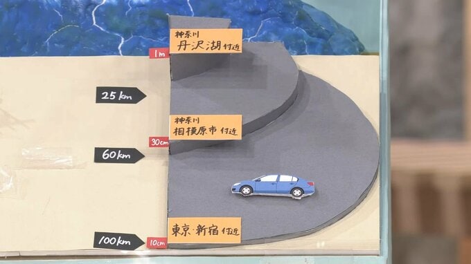 ▼25キロ離れた神奈川・丹沢湖付近 1メートル